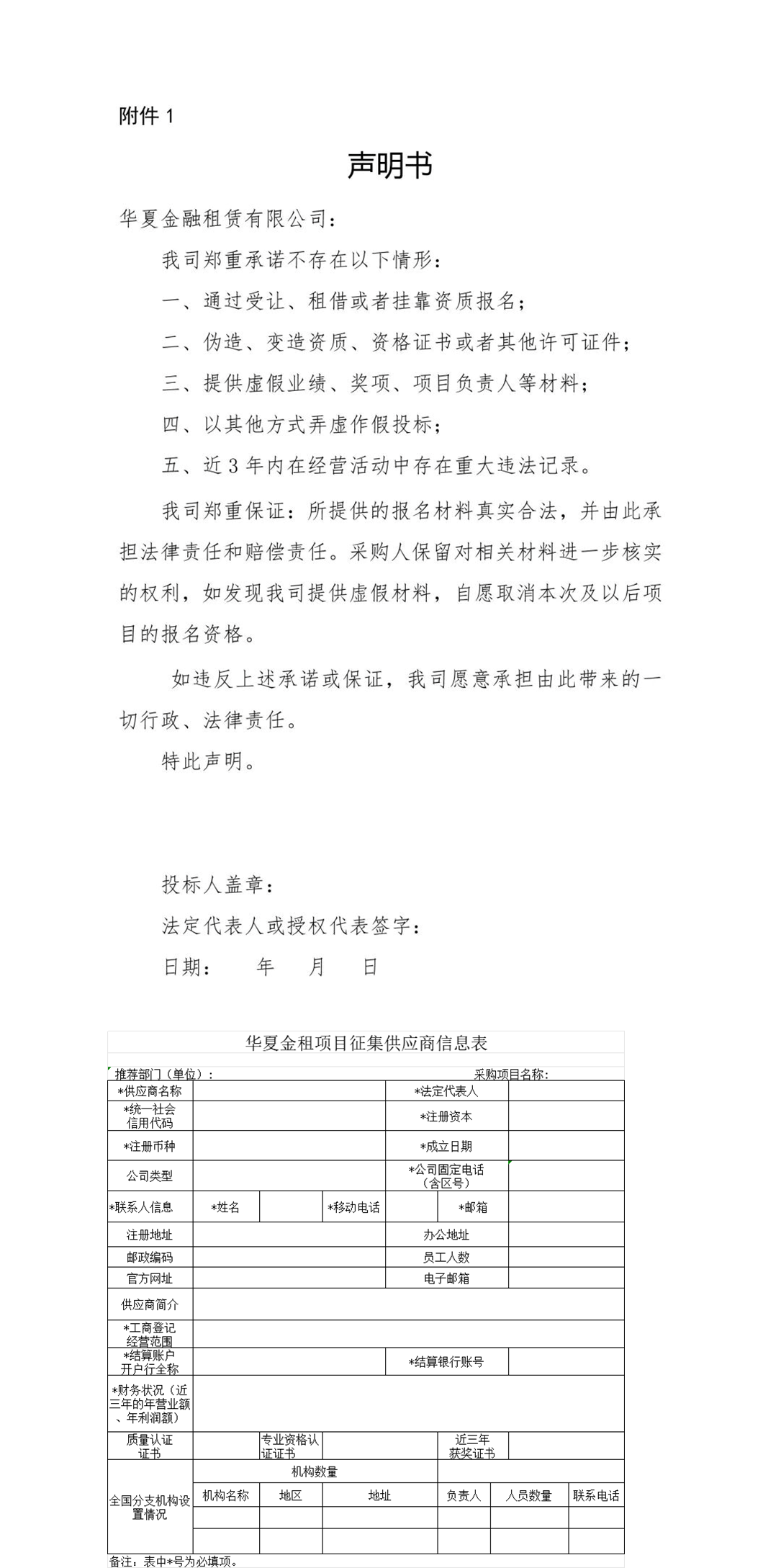 7. 华夏金租项目征集供应商信息表(详见附件2)。