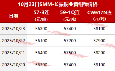 【SMM价格】2025年10月23日长振黄铜棒价格