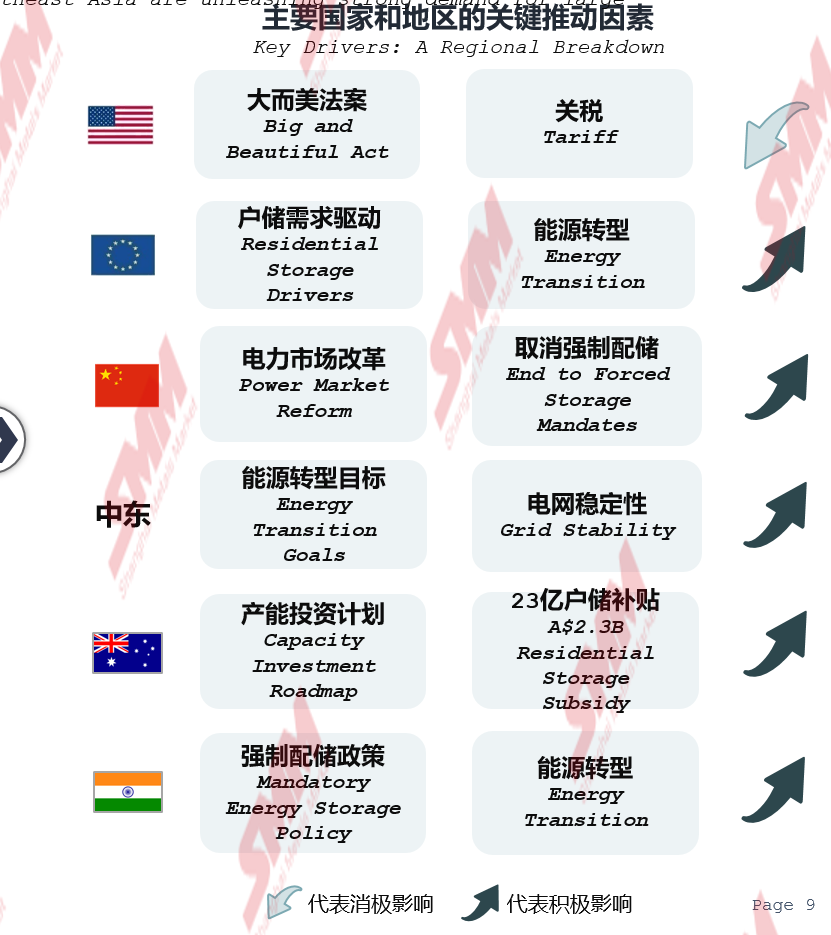 全球储能市场的主要增长区域仍将集中于三大地区:中国、美国和欧洲;受2030愿景影响,中东、澳大利亚和东南亚等新兴地区释放出大储型储能的巨大需求量。