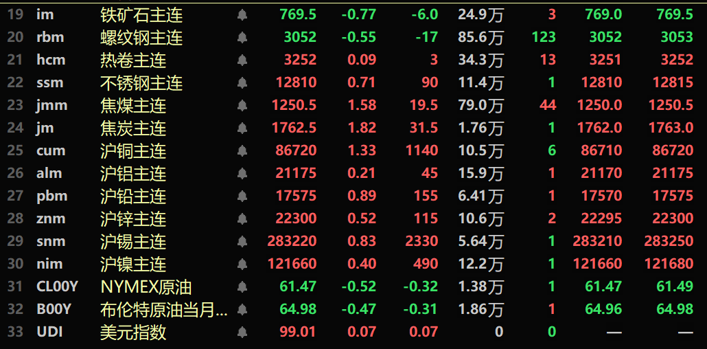 黑色系多飘红,铁矿跌0.77%,螺纹跌0.55%,热卷涨0.09%,不锈钢涨0.71%。双焦方面:焦煤主力合约涨1.58%,焦炭主力合约涨1.82%。