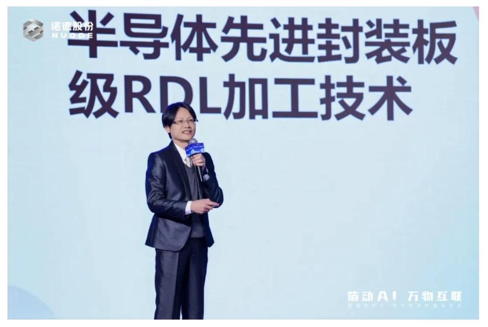 广东诺沛芯材有限公司总经理李家铭先生分享《半导体先进封装板级RDL加工技术》,他聚焦板级RDL(重布线层)技术,解读其如何打通PCB与半导体封装的产业壁垒。他指出,在后摩尔时代,行业转向依靠RDL(重布线层)等先进封装技术来提升芯片性能与集成度,而RDL制程的关键之一正是金属线路的加工,其材料以电镀铜为主。在此背景下,NPCF(微堆栈铜膜)系列产品作为一种高密度微增层重布电路铜箔绝缘层薄膜,带来了根本性的变革:它并非简单的片状材料,而是一种有机树脂与铜箔结合的复合结构,这种设计确保了铜箔与树脂间有更好的拉力及结合力,从而带来更高可靠性和成本效益。