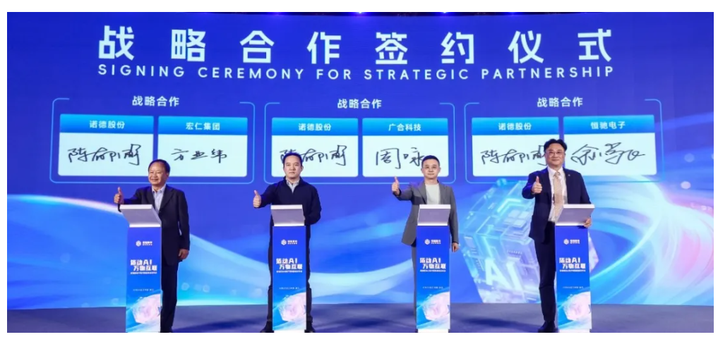 为推动技术落地与生态共建,诺德股份在现场与宏仁集团、广合科技、恒驰电子签署产业链战略合作协议,强化从研发到量产的全流程协同;并与韩国上市公司YMT签订载体铜箔技术合作协议,共同推进封装基板用铜箔的技术迭代与国产化进程。