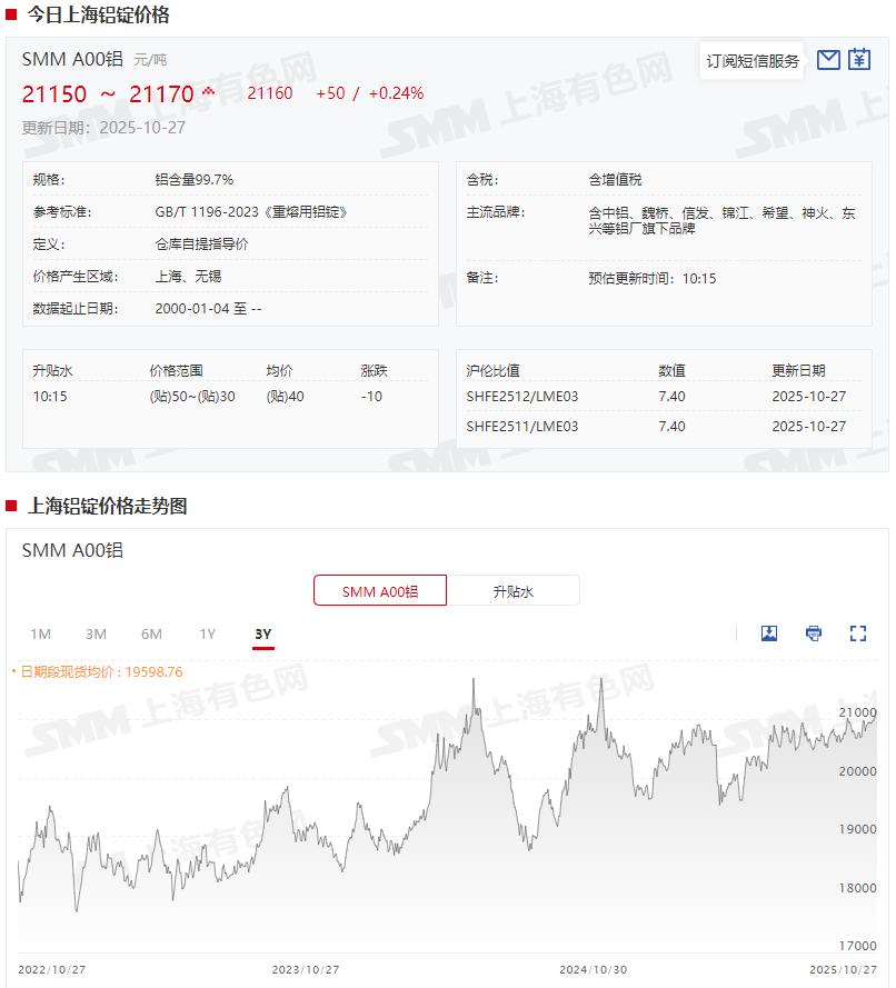 值得一提的是,2025年三季度铝价相比往年有所上涨,因此多数企业三季度净利润同比多有不同程度的提升。据SMM现货报价显示,2025年三季度SMM A00铝现货均价报20711元/吨,较2024年三季度的19560元/吨上涨1151元/吨,涨幅达5.88%。