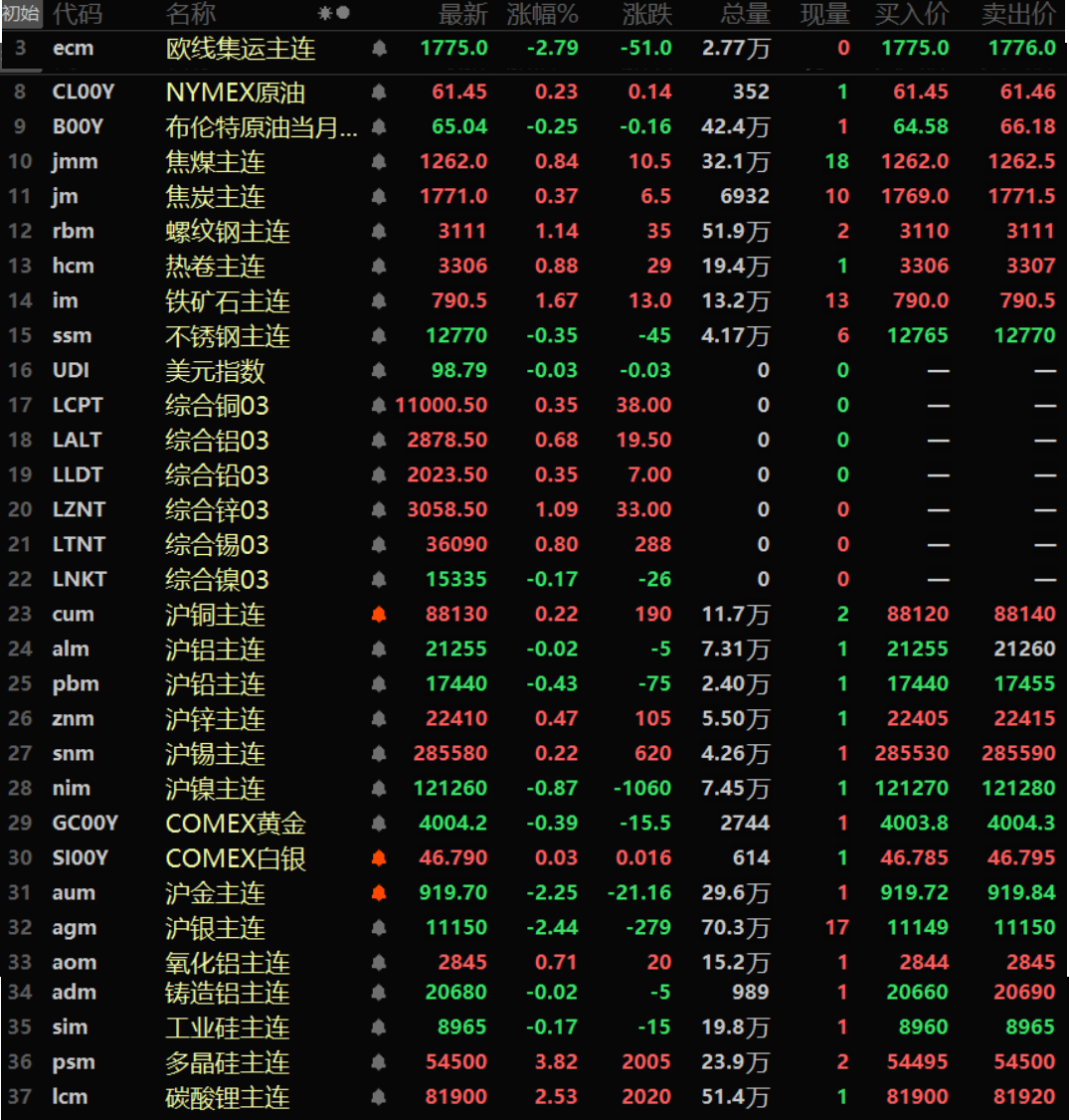 金属市场方面: