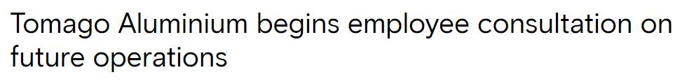 因此,Tomago Aluminium已到了一个必须考虑在其当前电力供应合同结束时停止运营的节点。