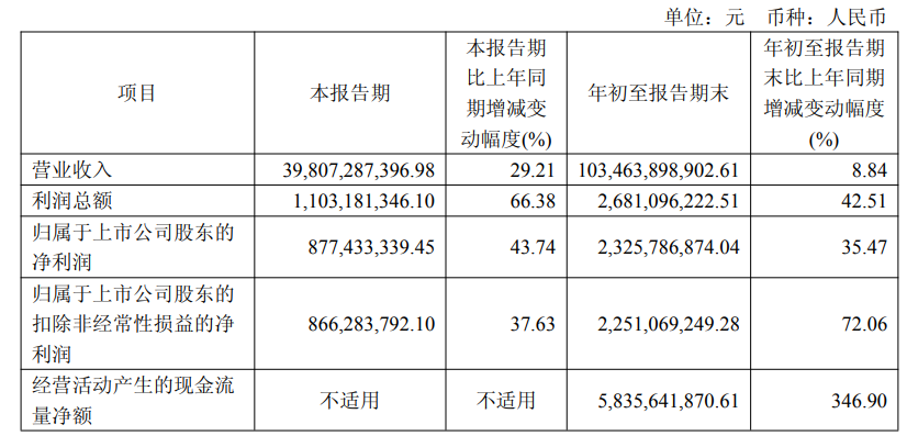 中信金属10月28日披露2025年第三季度报告。前三季度公司实现营业总收入1034.64亿元,同比增长8.84%;归母净利润23.26亿元,同比增长35.47%;扣非净利润22.51亿元,同比增长72.06%。