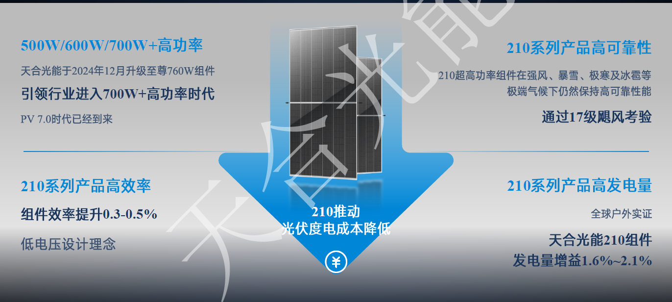 此外,其还对天合贡献:打造生态圈——700W+生态联盟推进210产业化;天合贡献:标准推动——中/大版型设计正式纳入各标准;行业尺寸统一,黄金尺寸板型至尊N型组件产品家族;天合组件:尺寸不变技术升级,满足23.8%的效率需求等进行了介绍。