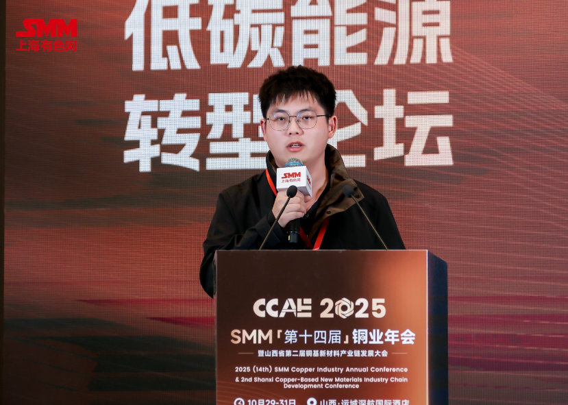 10月30日,在由上海有色网信息科技股份有限公司(SMM)、中条山有色金属集团有限公司主办的CCAE 2025 SMM(第十四届)铜业年会暨山西省第二届铜基新材料产业链发展大会——铜产业低碳能源转型论坛上,天合光能股份有限公司中国区解决方案经理周骏分享了“零碳驱动 铜创辉煌—天合智慧能源多场景解决方案”。