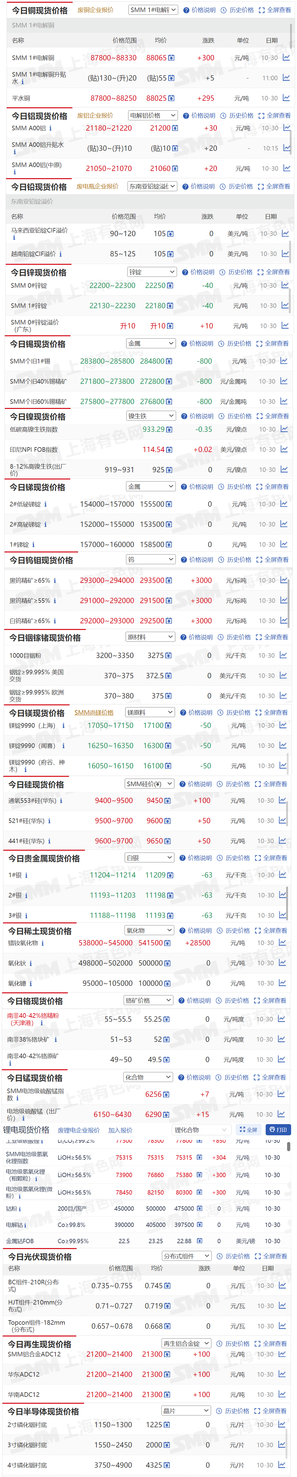 ►10月30日上海市场铜现货升贴水(第四时段)【SMM价格】