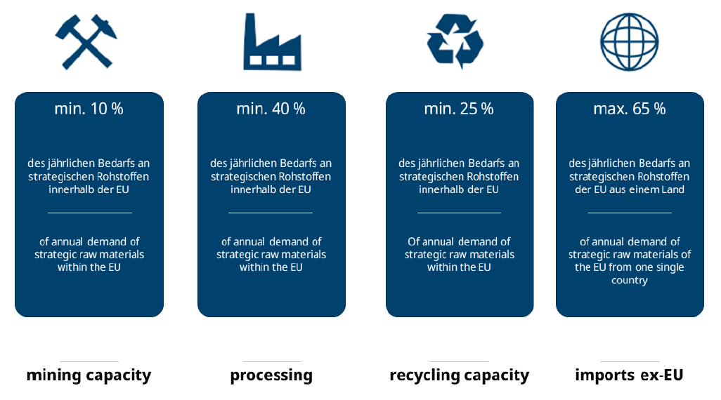 - 《关键原材料法案》(欧盟于2024年5月通过)为欧洲原材料安全且(更)可持续的供应奠定新战略基础。