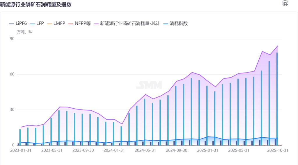 【SMM分析:10月磷矿石产量创新高 新能源需求驱动磷化工行业转型】2025年10月,磷化工行业在传统农业需求偏淡与新能源需求强劲的格局下运行。全行业磷矿石(折P₂O₅ 30%)产量攀升至约1400万吨的历史新高,新能源行业消耗指数提升至6.2,磷酸铁锂等产品需求旺盛是主要驱动力。