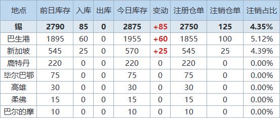 》查看更多金属库存信息