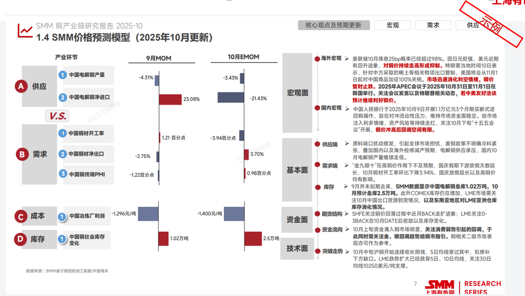 11月6日,在由常州同泰高导新材料有限公司,上海有色网信息科技股份有限公司(SMM)、山东爱思信息科技有限公司主办的2025SMM(第十届) 导体线缆工业展览会暨电工材料产业年会上,SMM数据部门大客户经理吕家乐分享了“从数据迷雾到决策蓝海——SMM数据信息解码实战指南”。