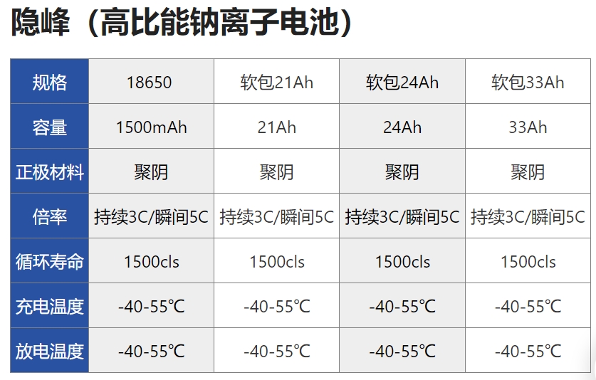 “钠电时代不再遥远,”隐功科技总经理朱健表示,“从能量密度180Wh/kg(上一代隐峰产品)到310Wh/kg,通过持续的技术迭代,我们有望在未来两年内实现能量密度向400Wh/kg迈进,为全球能源转型提供更优质的解决方案。”