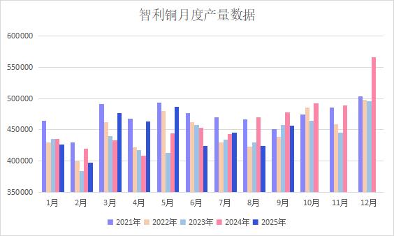 智利国家统计局数据显示,智利9月铜产量为456663吨,环比回升7.79%,同比下降4.5%。下半年以来智利铜矿生产干扰增加,当地铜产量受到影响,9月虽有回升,但仍不及去年同期水平。