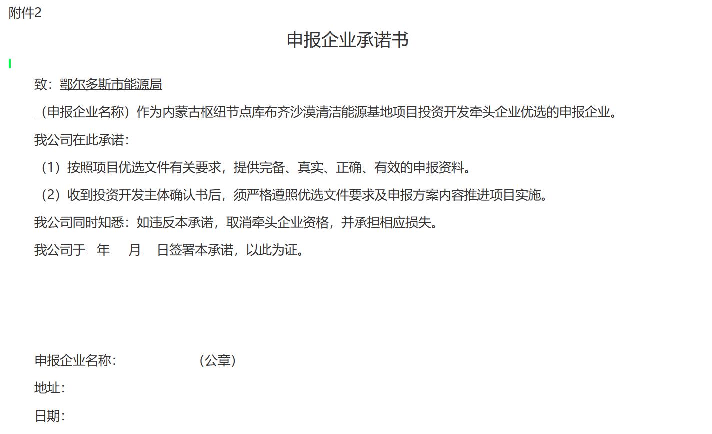 内蒙古枢纽节点库布齐沙漠清洁能源基地项目投资开发牵头企业优选方案