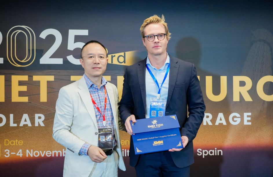 经过严格筛选,SMM评选出了一批在上述领域表现卓越的企业,并在由SMM主办、由加泰罗尼亚贸易与投资协会(ACCIÓ)(加泰罗尼亚政府)支持的2025欧洲零碳之路——光伏&储能峰会上,为这些荣获“SMM Global Tier 1 Suppliers Awards”奖项的企业举行了隆重的颁奖仪式!