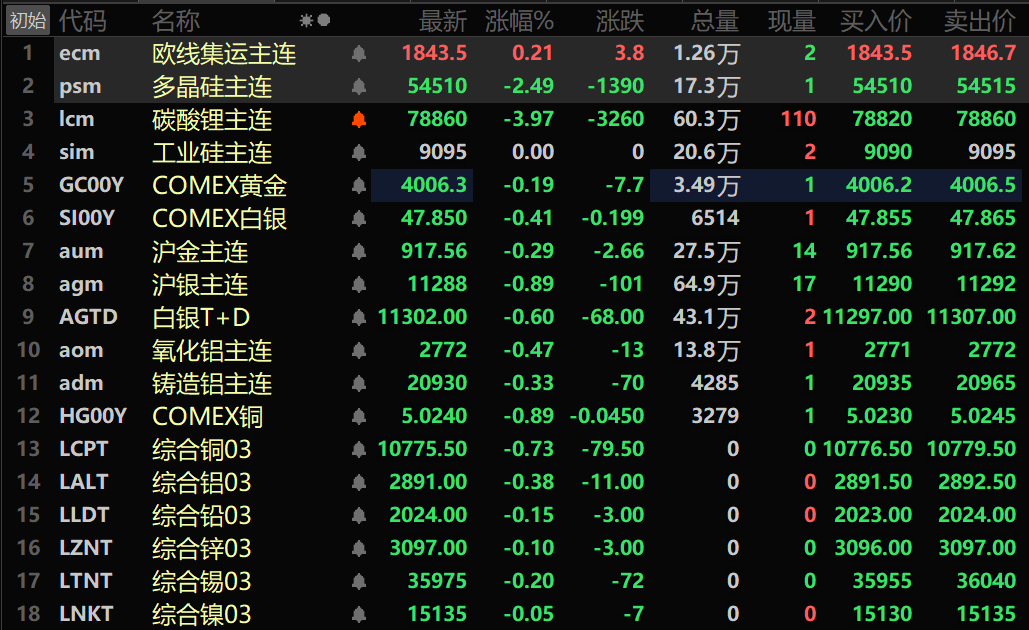 此外,铸造铝主连期货跌0.33%,氧化铝主连跌0.47%。碳酸锂主连跌3.97%,工业硅主连平于9095元/吨。多晶硅主连跌2.49%。
