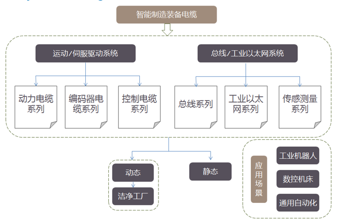 •拖链内配线,主要用于机器人、机床长期拖链往复运动用动力传输电缆及编码器控制电缆;