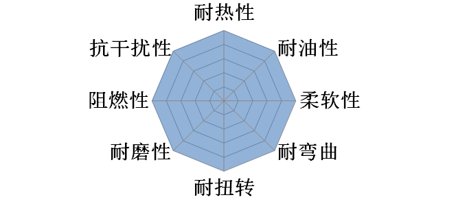 •具有高柔性、耐扭转、耐弯曲、耐磨、耐油、阻燃、耐高低温等特性。