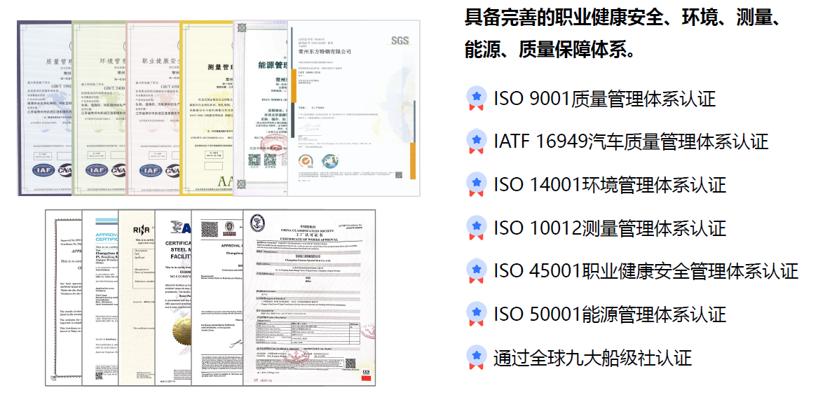 常州东方特钢有限公司全面按IATF 16949、IS9001管理运行,确保从原材料到成品的全过程受控。