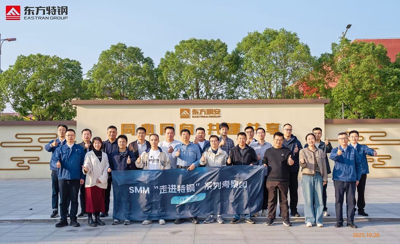 为打破壁垒,促进产业链的深度融合与协同创新,上海有色网信息科技股份有限公司(SMM)钢铁事业部于 2025 年 10 月 27 日 - 29 日,组织由由东风商用车有限公司、东实精工齿轮(武汉)有限公司、东实科技集团股份有限公司研发院、广州小鹏汽车科技有限公司、湖北三环锻造有限公司、江铃汽车股份有限公司、江西五十铃汽车有限公司、洛阳轴承研究所有限公司、日产技术开发(上海)有限公司、苏州汇川联合动力系统股份有限公司、浙江零跑科技股份有限公司、浙江万向精工有限公司等 12 家车企及零部件企业组成的考察团,开展 SMM车企 & 零部件走进特钢 - 江苏场专项考察活动,实地探访特钢企业生产基地,深入了解特钢产品研发、生产工艺及供应能力。