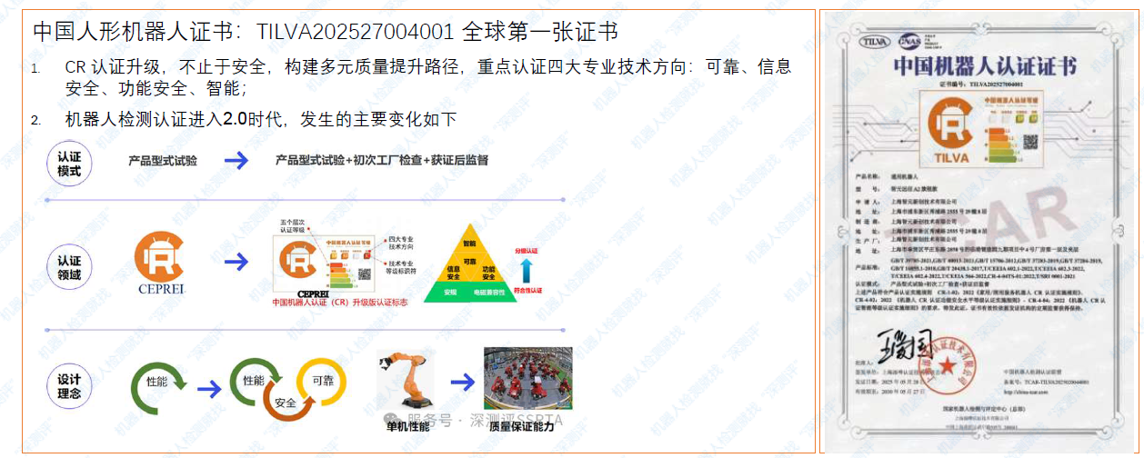 此外,其还从从001 号人形机器人CR 证书说起-2、从001 号人形机器人CR 证书说起3-标准构建方向等角度进行了阐述。