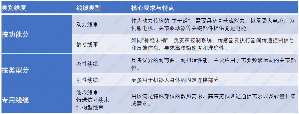 2.5.1 人形机器人电缆类型需求
