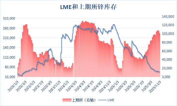 上期所公布的数据显示,10月31日当周,沪锌库存继续下降,周度库存减少5.27%至103,416吨。