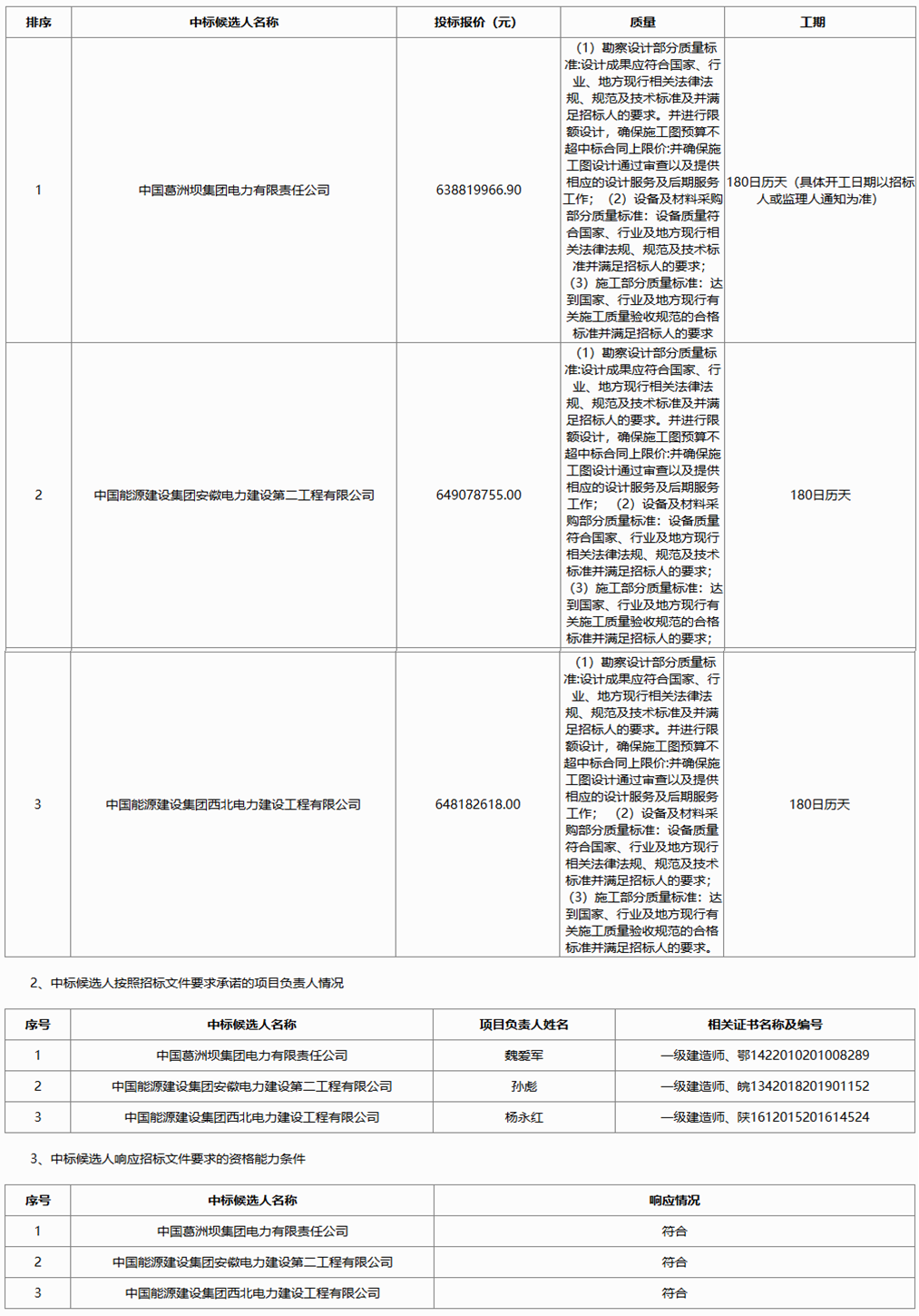 第三中标候选人为中国能源建设集团西北电力建设工程有限公司,投标报价648182618.00元。