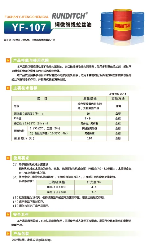 经过多年的努力,公司不断发展拓大,在首届的中国线缆行业G100峰会上获得“优秀材料供应商称号”和中国线缆及线材高质量发展大会“优秀材料供应商称号。”公司现形成有拉丝润滑油类、炸药乳化剂类、纺织助剂类、油漆涂料类、特种专用润滑油类等五大系列共三十多个品种的化工产品。产品销售遍及国内外市场,并凭借过硬的产品质量顺利进入欧美、非洲和东南亚市场,得到广大客户的好评。