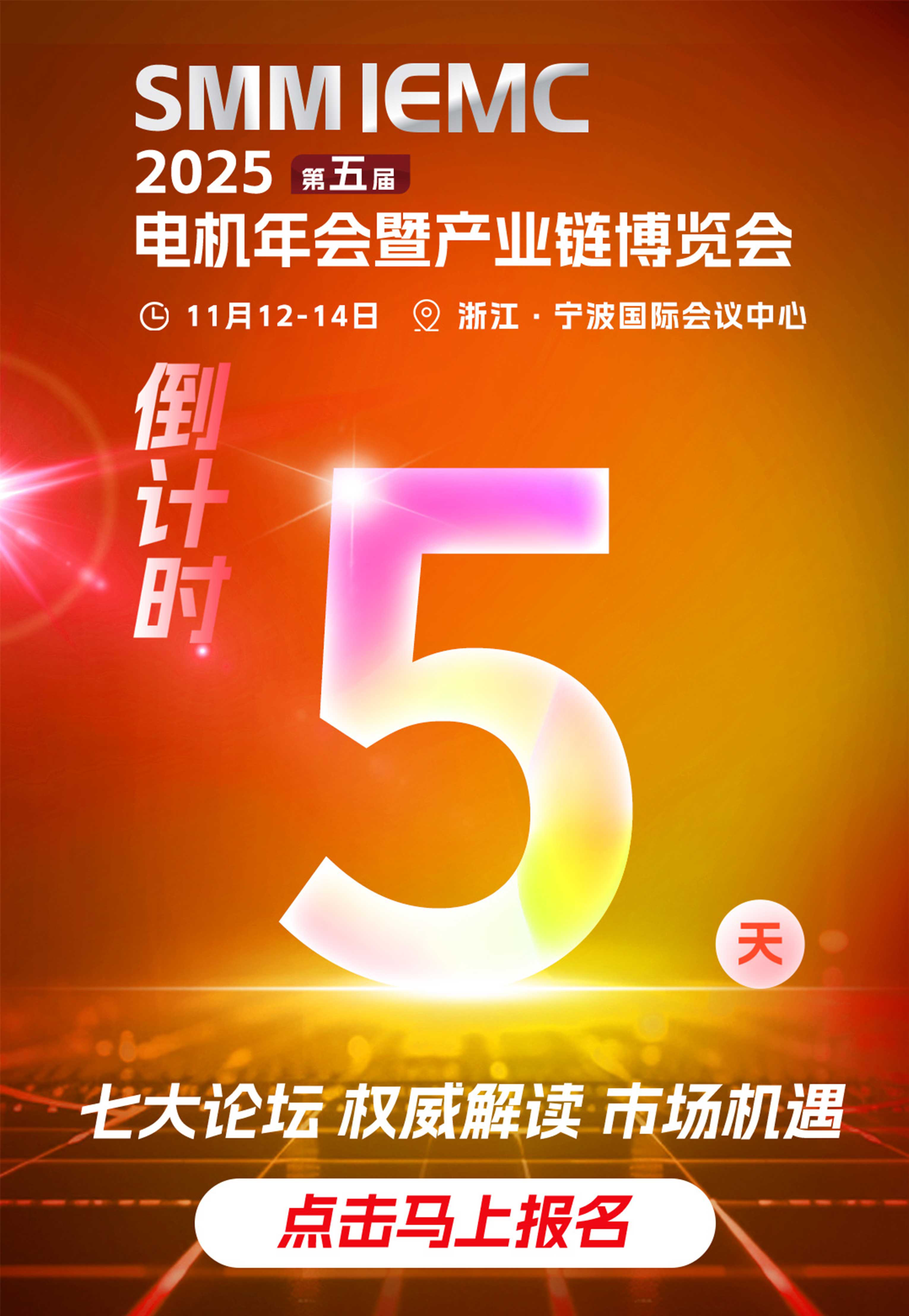 2025年11月12-14日,SMM 2025 IEMC(第五届)电机年会暨产业链博览会在浙江·宁波国际会议中心盛大启幕!本届展会深度赋能电机全产业链生态,全维展示电机/电机控制系统及装置/线圈配套及材料/机器人/测试仪器及设备等核心领域!创新打造3大主题活动+7大行业论坛矩阵。即刻点击报名,与行业同仁携手共创电机产业更加灿烂的未来!