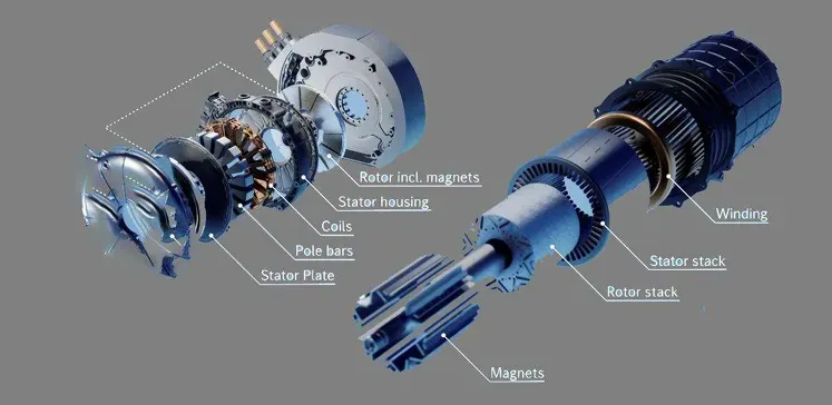 相比传统径向磁通电机,它的突出优势是功率与扭矩密度高,相同体积重量下能输出更大动力,部分产品功率密度达18.4千瓦/公斤,效率可超95%。扁平结构使其轴向尺寸仅为传统电机的1/3,能节省车辆动力舱空间,减轻车身重量,间接提升电动车续航。无轭设计还能减少磁能损耗与电磁噪声,进一步优化效率。