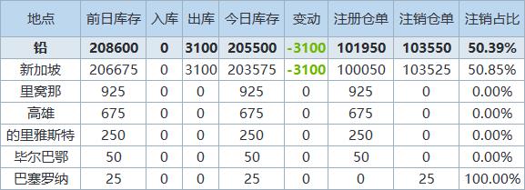 11月5日LME金属库存及注销仓单数据