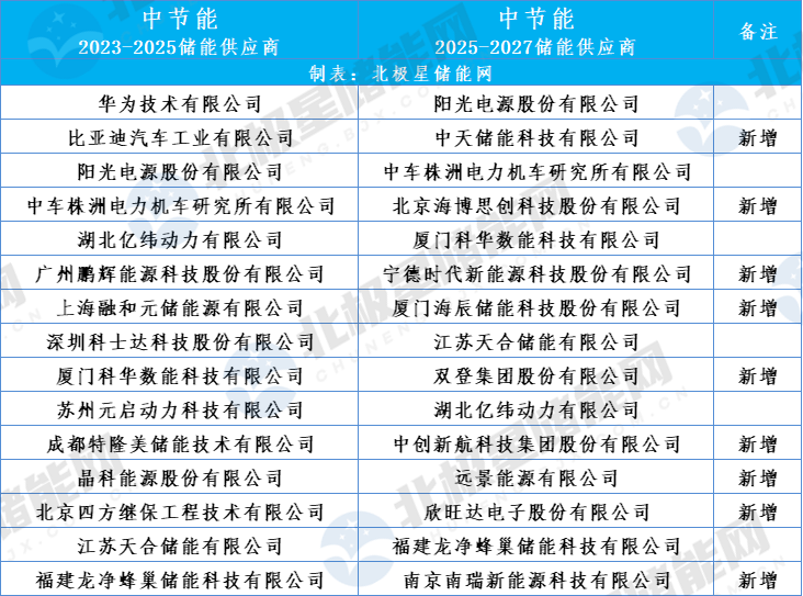 此前,中节能2023-2025年储能系统供应商名单,共有15家企业入围。现在来看,今年入围名单较此前有了较大调整,9家企业是这次首次入围。