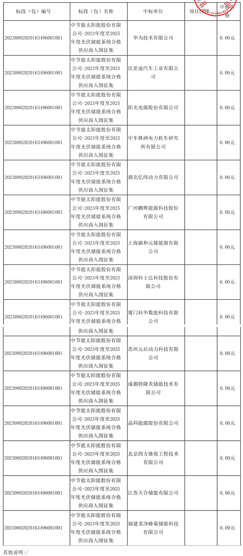 中节能太阳能股份有限公司-2023年度至2025年度光伏储能系统合格供应商入围征集中标结果公告