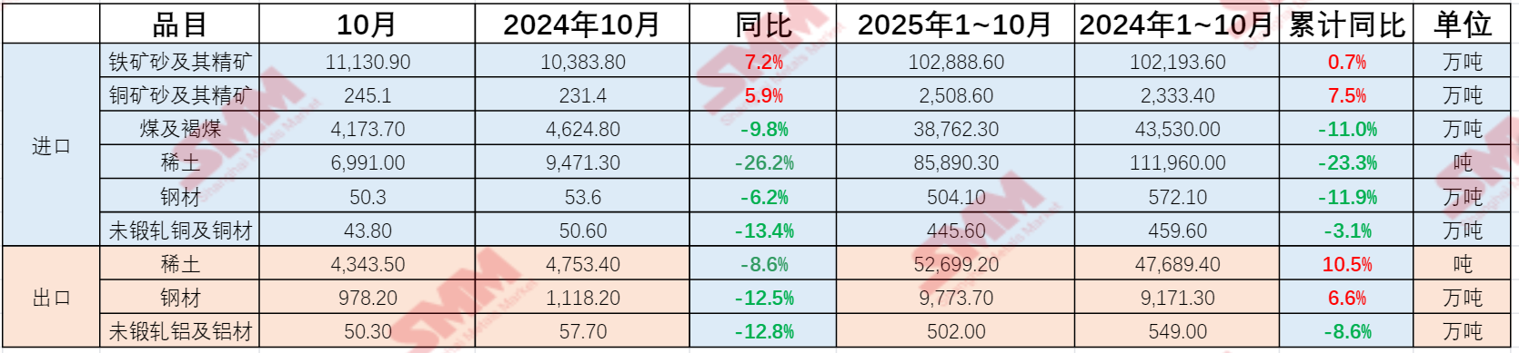 SMM根据海关总署公布的数据整理了金属行业部分产品进出口情况,具体如下: