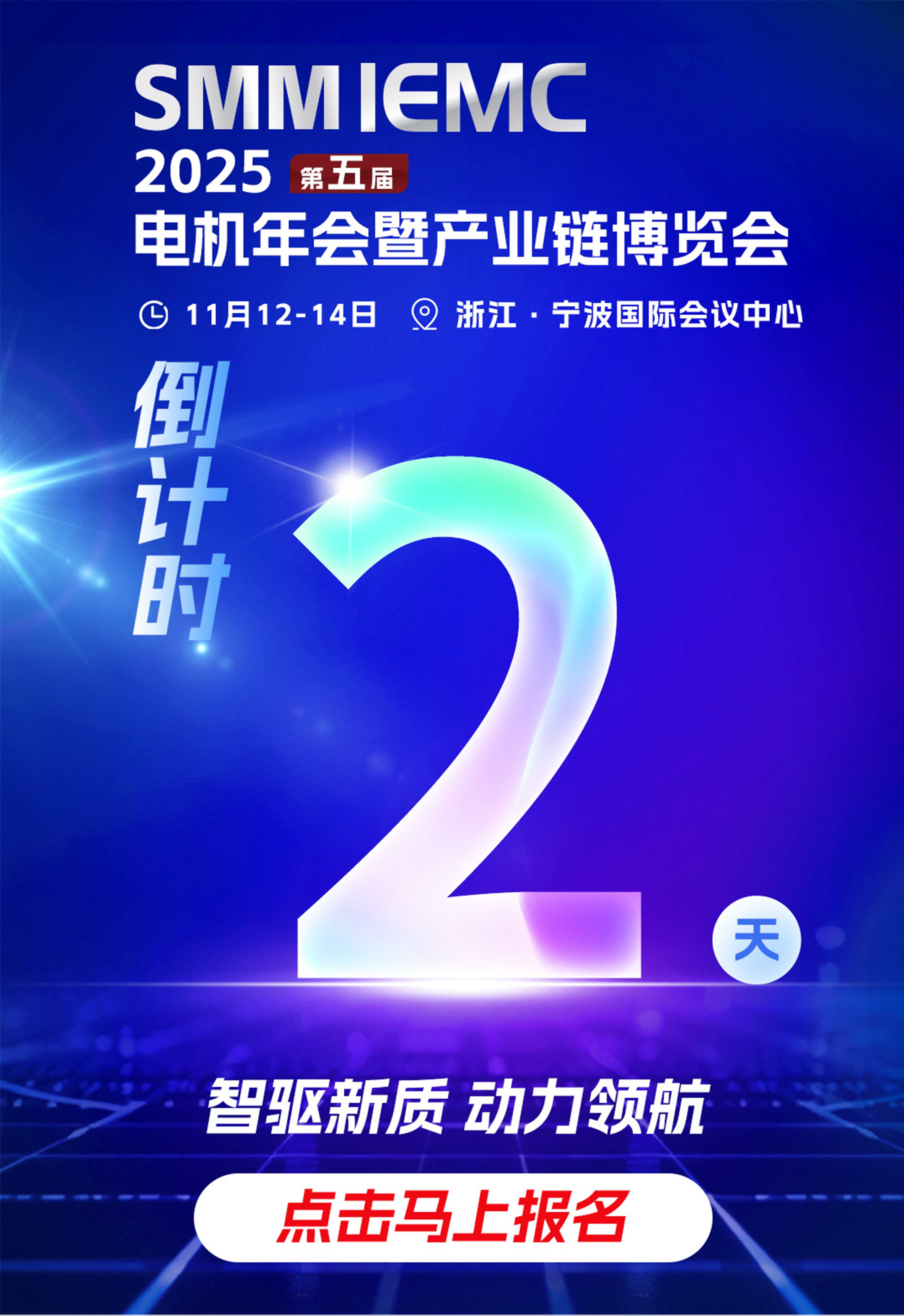 2025年11月12-14日,SMM 2025 IEMC(第五届)电机年会暨产业链博览会在浙江·宁波国际会议中心盛大启幕!本届展会深度赋能电机全产业链生态,全维展示电机/电机控制系统及装置/线圈配套及材料/机器人/测试仪器及设备等核心领域!创新打造3大主题活动+7大行业论坛矩阵。即刻点击报名,与行业同仁携手共创电机产业更加灿烂的未来!