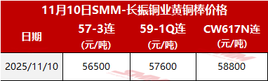 【SMM价格】2025年11月10日长振黄铜棒价格