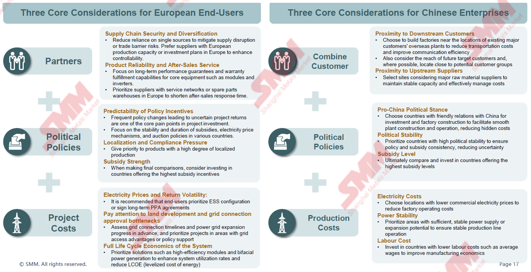 对于有意拓展欧洲市场的中国企业而言,需关注三大核心要点。首先,必须将客户生产成本与政治政策相结合,综合考虑靠近下游终端、接近上游供应商以及政治对华友好等因素。