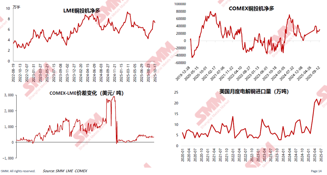 中国铜冶炼厂产量大幅增长填补海外减产空缺:2025年SMM中国电解铜产量上半年同比增加11.4%,海外冶炼厂在上半年频繁出现减产、停产情况。表观来看,国内冶炼厂的新增产量极大填补了海外减产造成的供应紧张。
