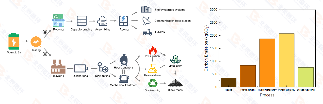 现有多种电池回收工艺,包括再利用、机械预处理、火法冶金、湿法冶金和直接回收。