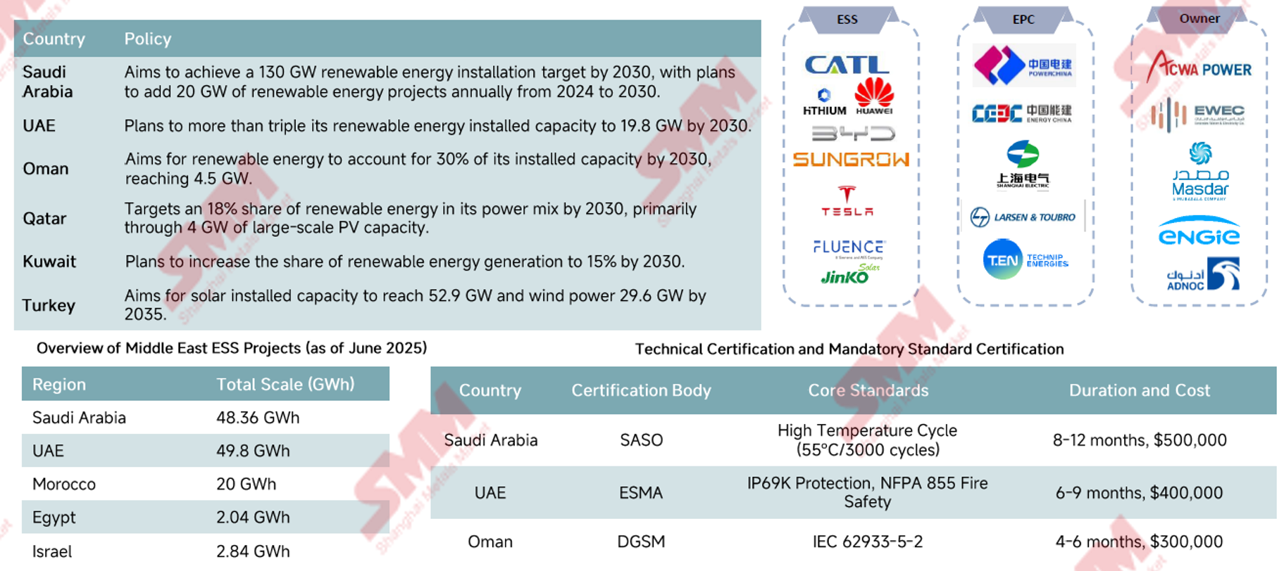 中东地区正在经历一场历史性的转型,从"石油帝国“转变为"零碳绿洲"。海湾国家利用丰富的太阳能资源以及拥有数万亿美元资本的主权基金支持,计划到2030年将可再生能源的份额提高至50%,这将为储能市场带来巨大的需求。
