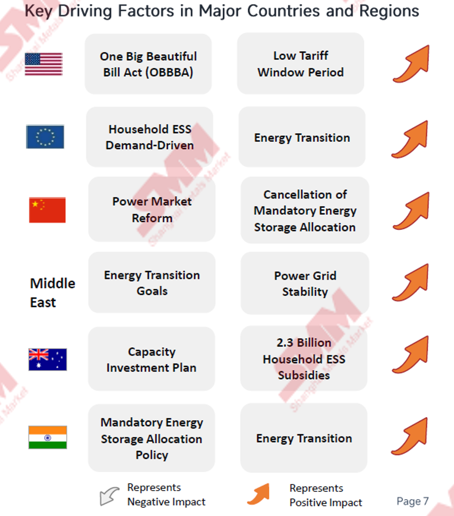 据SMM分析,0BBBA政策显著削弱了中国电池产品在美国市场的竞争力。加之明年即将实施的高额关税,使得内部收益率(IRR)大幅下降。为了满足ITC补贴的要求,中国的电池制造商正积极引入外资,并将海外生产基地调整为非PFE状态。预计未来一年内,直接向美国出口的渠道将暂时关闭。尽管2025年的需求前置效应会提前消耗部分未来的市场需求,但整体来看,美国市场仍有望在2026年保持增长趋势。