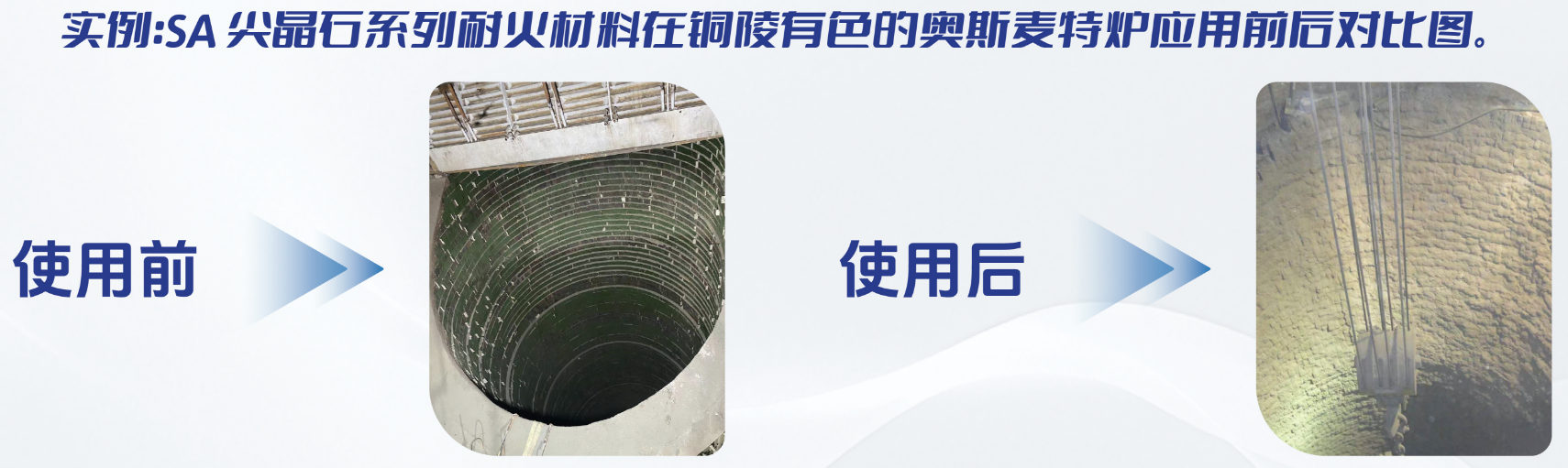 SA 尖晶石耐火材料特点:抗冲刷、抗侵蚀、炉寿成倍提高,广泛应用于:奥斯迈特炉、闪速炉、侧吹炉、底吹炉,阳极炉、回转窑、环保炉、各种电炉等。