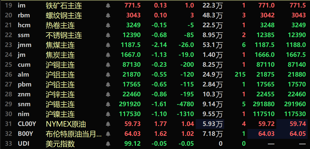 截至11月14日11:42分,部分期货午间行情: