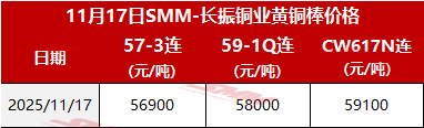 【SMM价格】2025年11月17日长振黄铜棒价格