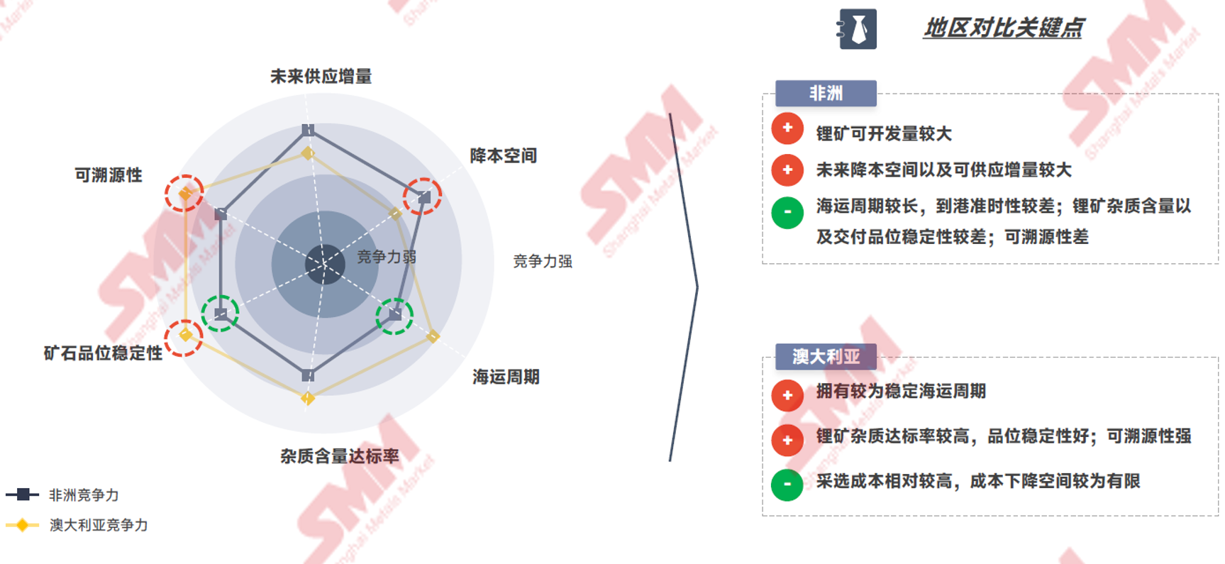 非洲锂矿虽然多方面竞争力低于澳大利亚锂矿,但其未来可供应增量潜力较大