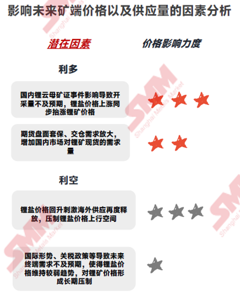 SMM预计,2025年,中国锂云母有望提供约17万吨LCE的供应,由于成本不具备优势,只有少许有技术优势的锂盐厂及矿山持续供量和扩产,预计2030年中国锂云母供应量或将达到23万吨LCE上下。