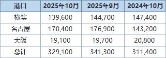 11月18日(周二),日本丸红株式会社公布,2025年10月底,日本三大主要港口的铝库存下滑至329,100吨,较前月减少3.6%。